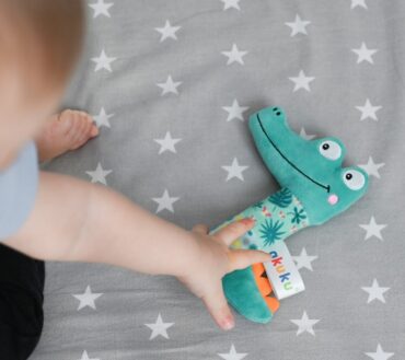 Jucărie zornăitoare de pluș Akuku A0644 Crocodil – moale, interactivă, pentru bebeluși
