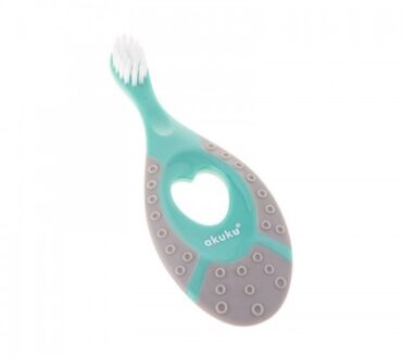 Periuță de dinți Akuku A0157 Mint/Grey 0–2 ani – silicon moale, peri moi