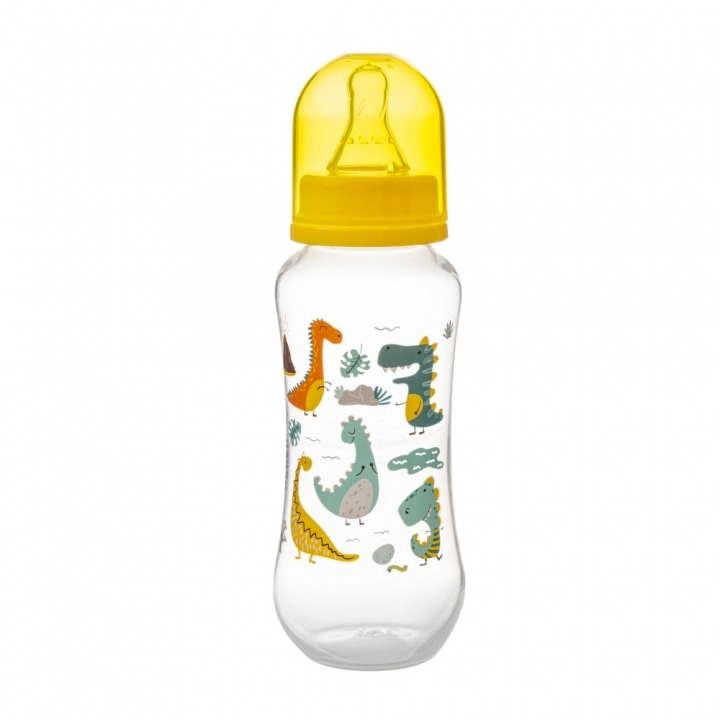 Capacul etanș și colorat previne scurgerile și protejează tetina împotriva murdăririi. Biberonul este decorat cu imprimeuri atrăgătoare și are graduație vizibilă pentru dozarea precisă a hranei.