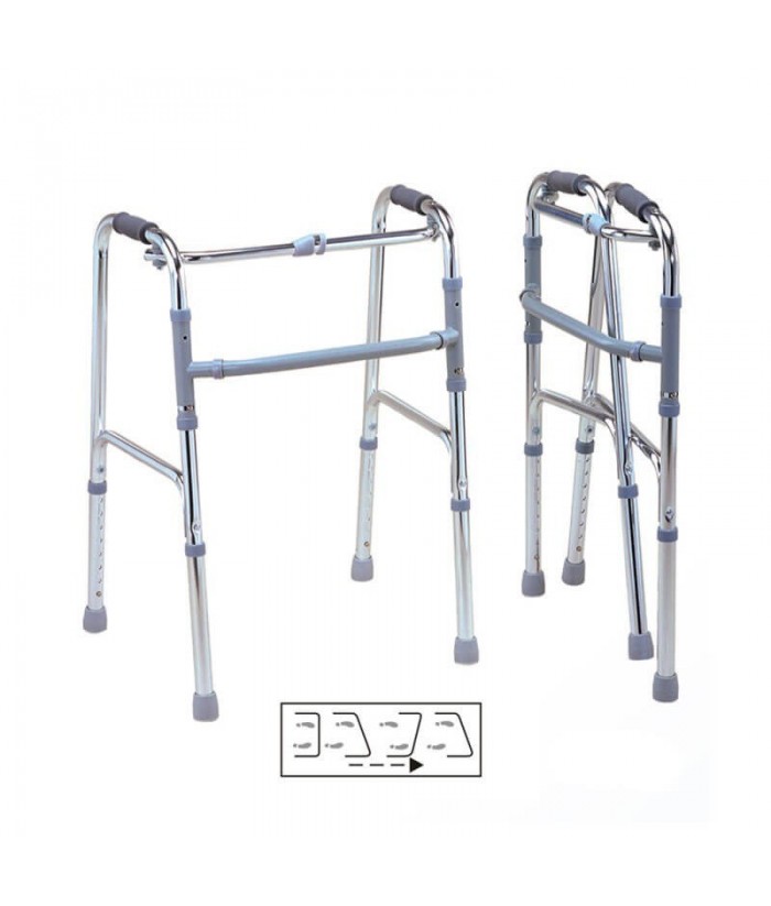 - Cadru de mers realizat din aluminiu inoxidabil, transformabil din cadru de mers fix in cadru de mers cu miscare pas cu pas, manere si pufere de cauciuc moi si sigure, mecanism de pliere frontal.