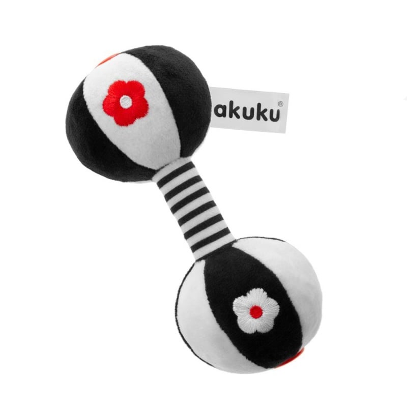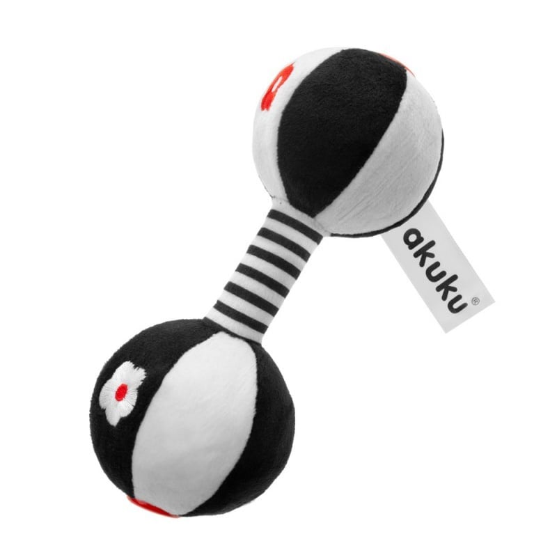 Jucăria senzorială de pluș Akuku A0482 Halteră este concepută pentru a stimula dezvoltarea armonioasă a bebelușului încă din primele zile de viață.