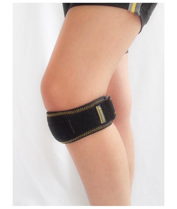 • Indicaţii: proiectata pentru a sprijini rotula din partea de jos, fiind captusita cu silicon special care aplica presiune pe tendonul cvadriceps. Recomandata in sindromul dureros patelo-femural, tendinita / tendinopatie patelara (tendon rotulian).