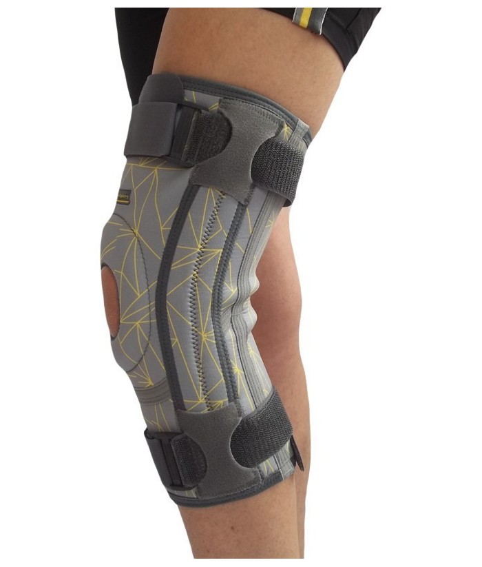 • Indicaţii : recomandata pentru afectiuni minore ale meniscului sau rotulei, traumatisme ale ligamentelor, dureri de genunchi provocate de osteoartroza, suprasolicitare, inelul din silicon din jurul rotulei oferta un confort optim, sustine ligamentele prin insertiile laterale din metal, orteza lunga are benzi elastice suplimentare de prindere deasupra si dedesubtul genunchiului, pentru o fixare mai buna.