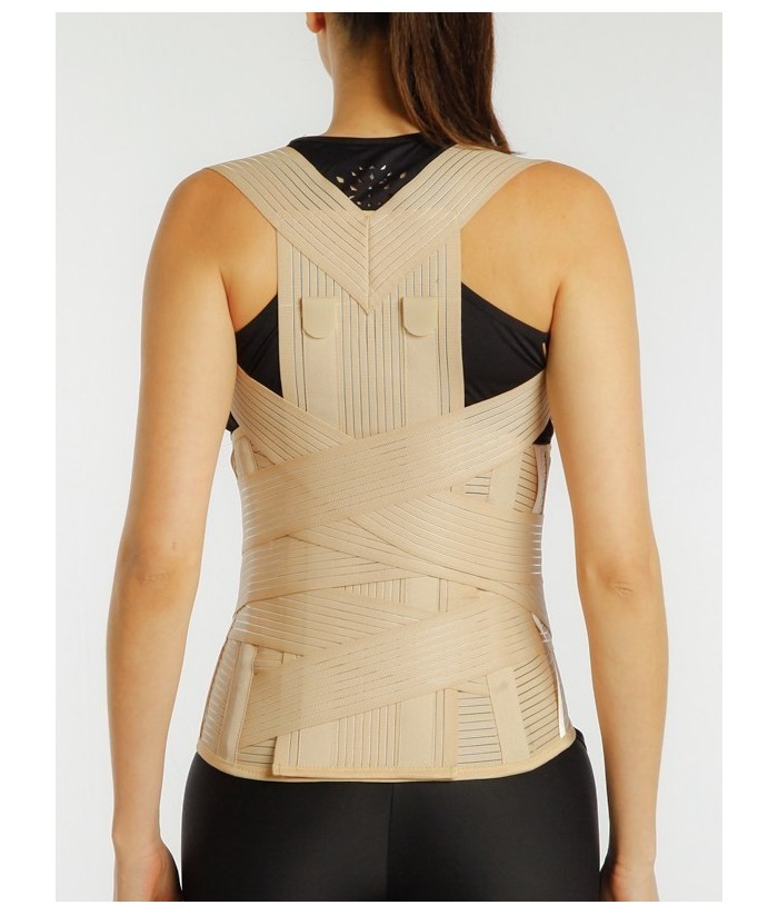 • Este realizata din material textil elastic, inchidere anterioara cu scai, sustinerea fiind data de cele 2 atele metalice pozitionate vertical pentru sustinerea coloanei vertebrale.
