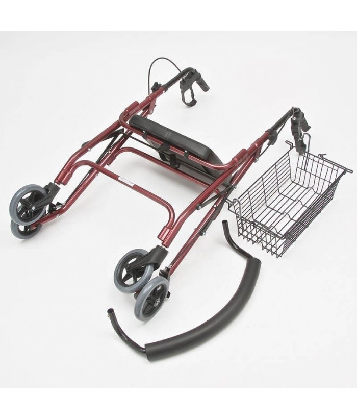 Corpul rolatorului este confectionat din otel rezistent si durabil, vopsit in pulberi epoxi. Este pliabil, reducand astfel volumul ocupat la transport.