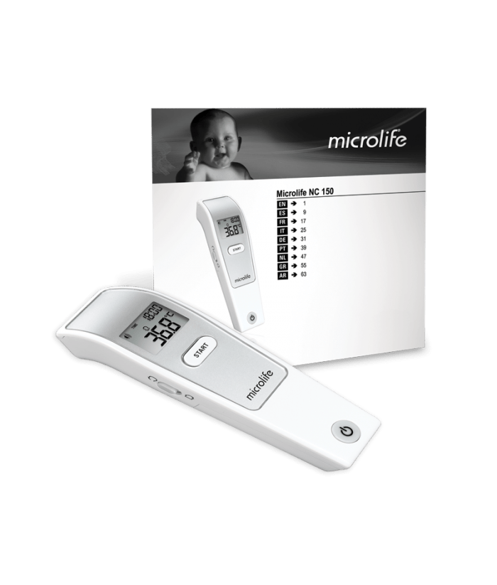 Microlife vine cu un dispozitiv de calitate foarte înaltă Termometrul NC 150. La prima vedere pare un simplu termometru, dar în realitate este un dispozitiv cu tehnologii inovative, iluminat color, aplicare multiplă, memorie, beep, alarma și o nouă generatie de senzori infraroșu.